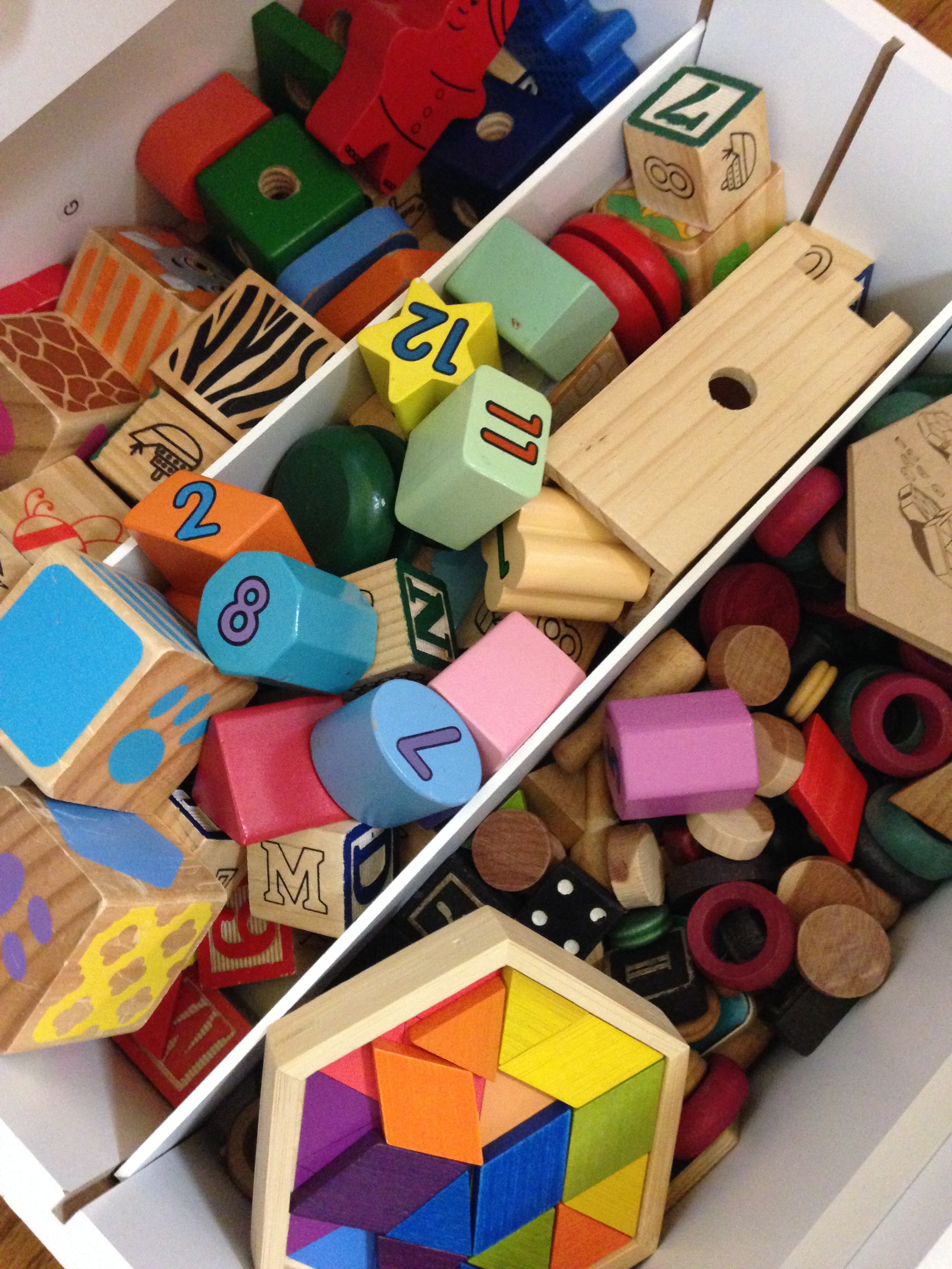- Steal From Your Kids – Seriously! Most of the wooden pieces in the drawer above were “liberated” from my children. And they never knew they were missing!