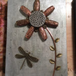 My theme is “Recycled junk art assemblage on wood”. I’ll be making some more of my assemblage flowers on wood panel, similar to the large Differential Bloom painting I finished earlier this year. These, however, will be much smaller and, perforce, simpler in design. After all, I have to make 30 of them!