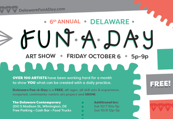 180 participants have made one piece of small artwork every day of September. Now they’re ready to show you! Of course, you’ll need to visit the Delaware Contemporary to see them all but I’ll show you a few below.
