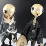 What is it about these strange tiny dolls that makes assemblage artists go gaga? Frozen Charlottes are ubiquitous in mixed media and altered art creations, whether shabby chic, grungy and distressed, or Victorian sweet. Flawed and discolored, they can lend a creepy or tragic feeling to artwork. Some folks love ’em, some folks hate ’em.