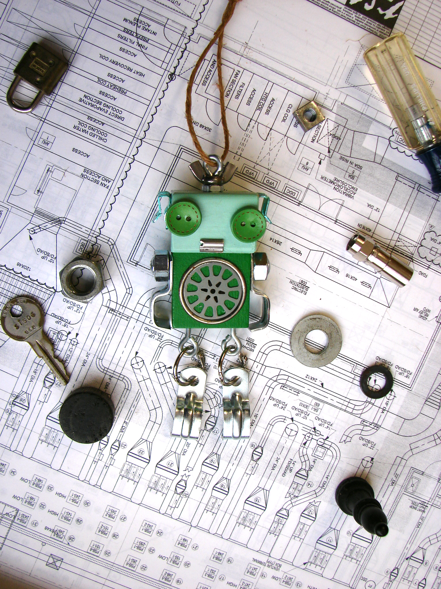 Home The Pain & The Process of Making Art Making Christmas Ornaments in January - Who Does That? Green Loose Legs Robot Ornament