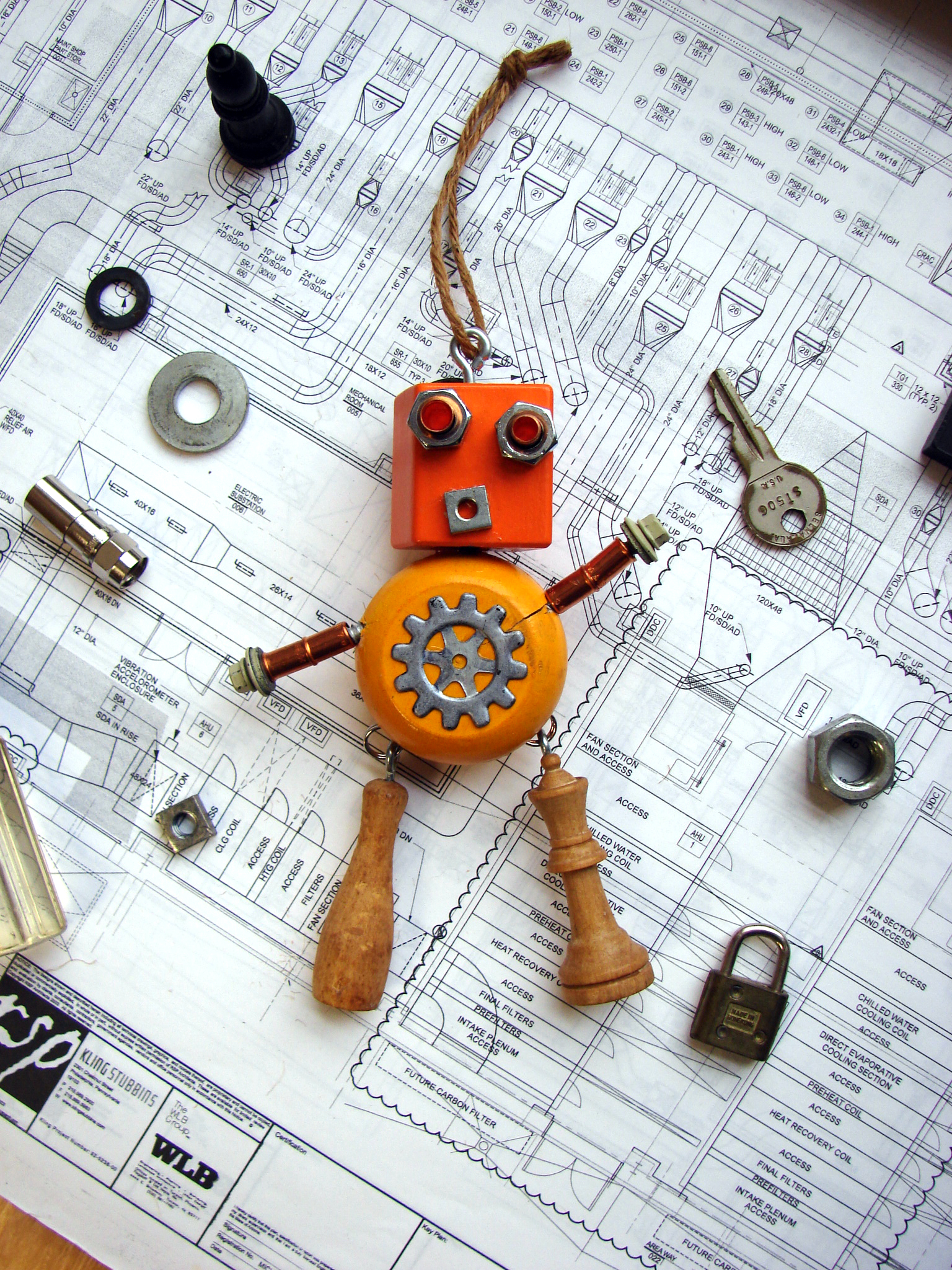 Home The Pain & The Process of Making Art Making Christmas Ornaments in January - Who Does That? Orange Yo Yo Robot Ornament