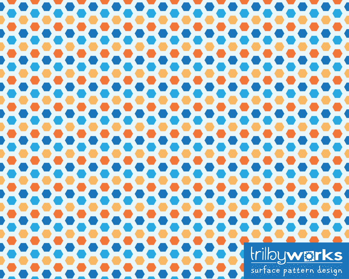 Home Patterns Monster Seamless Repeat Patterns for Spoonflower Hexagons in Blues and Oranges by Trilby Works