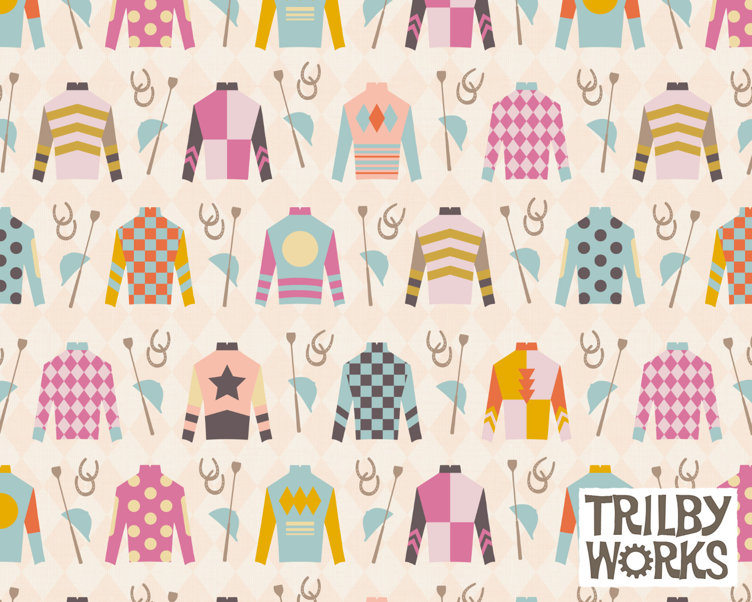 Sometimes a design that you enjoyed making but weren’t sure of its appeal will sneak up and surprise you by becoming a best seller in your shop. And that’s exactly what happened with my “Lucky Charm Horse Racing Jockey Silks” pattern at Spoonflower.