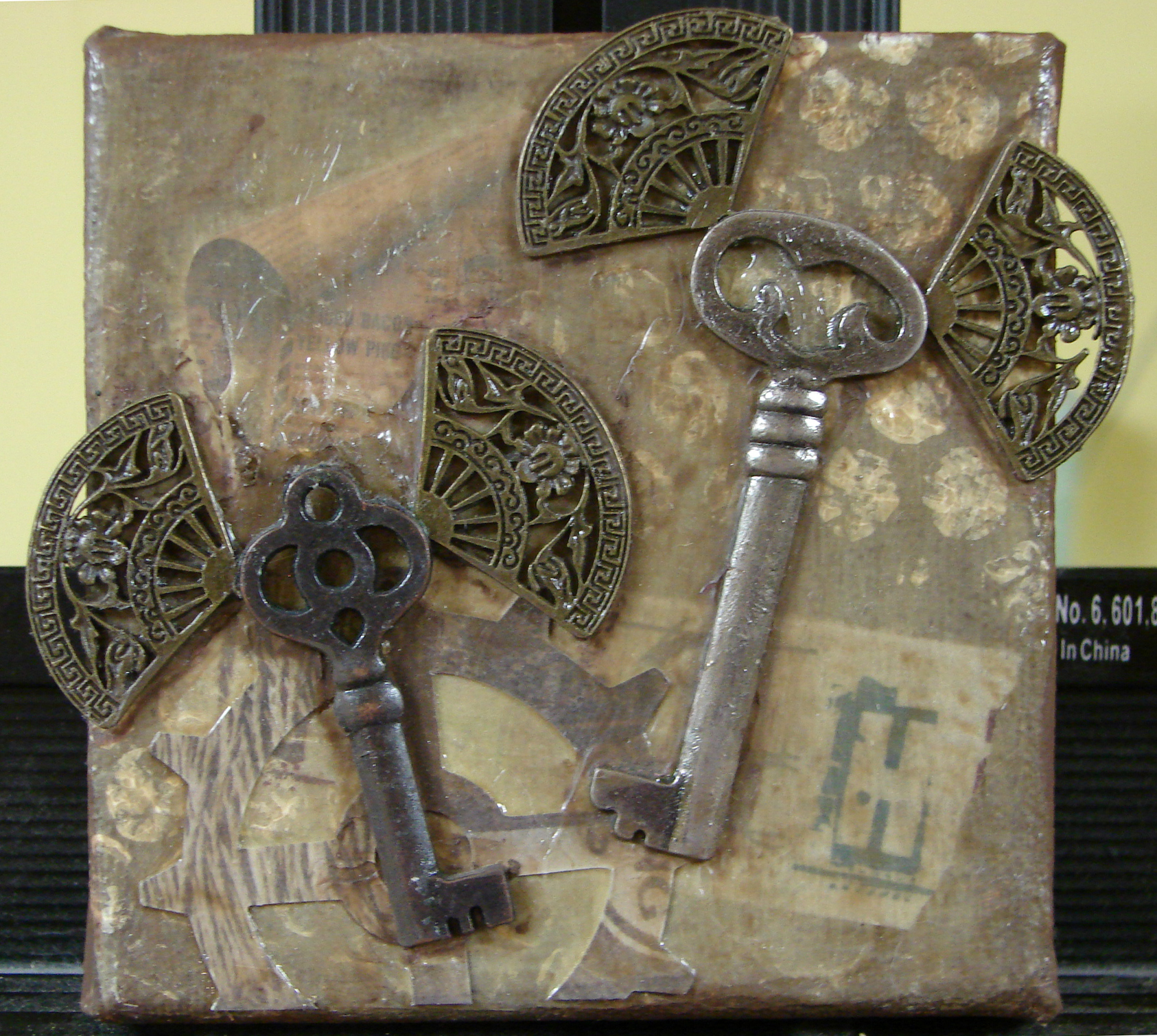 Home Goods & Sundry Small Mixed Media Assemblage Art on Canvas Small Mixed Media Assemblage Art on Canvas, 9