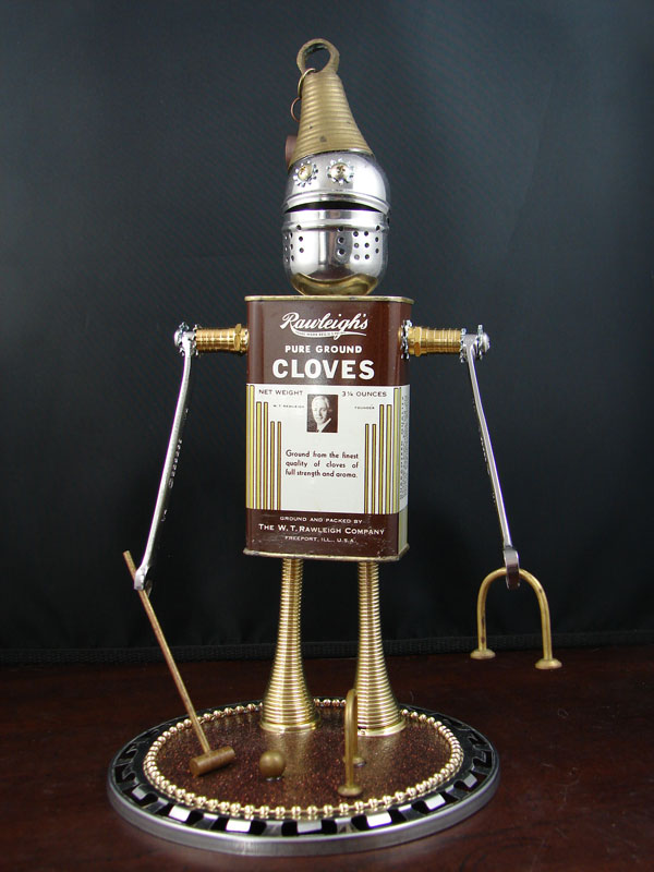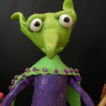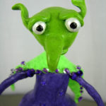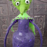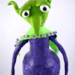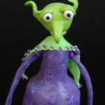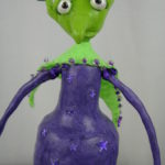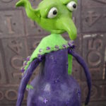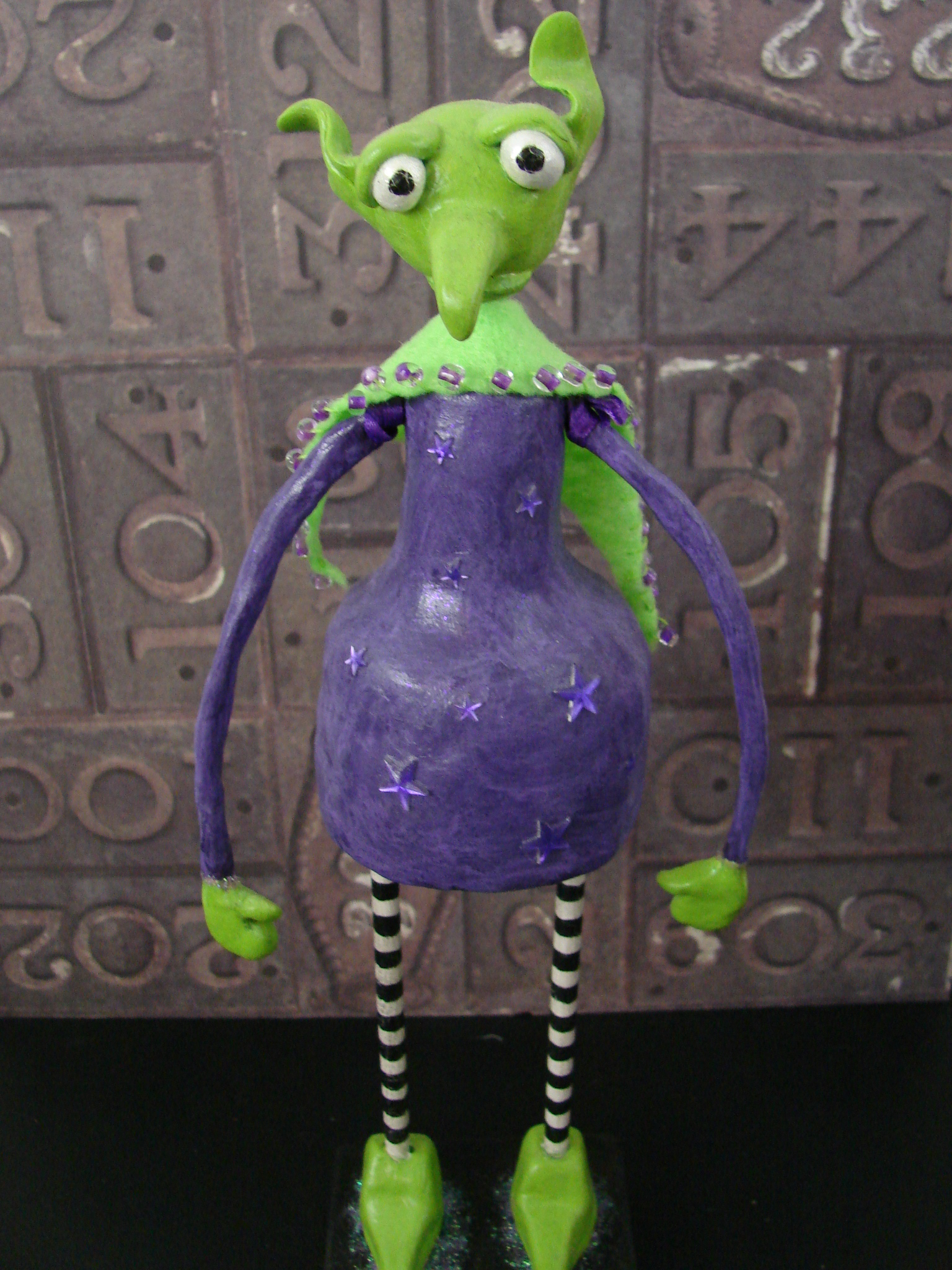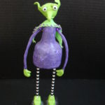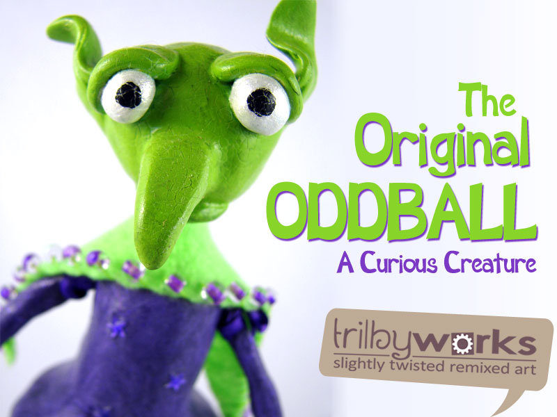 What is this thing? I don’t know. Kind of a goblin, sort of a monster. I call it an “Oddball.” Mainly because its head is shaped like a ball and I literally rolled the clay into a ball to make the head. This guy is assembled from some household recyclables, a small Styrofoam ball, polymer clay, wire, toothpicks, and candy stirring sticks.