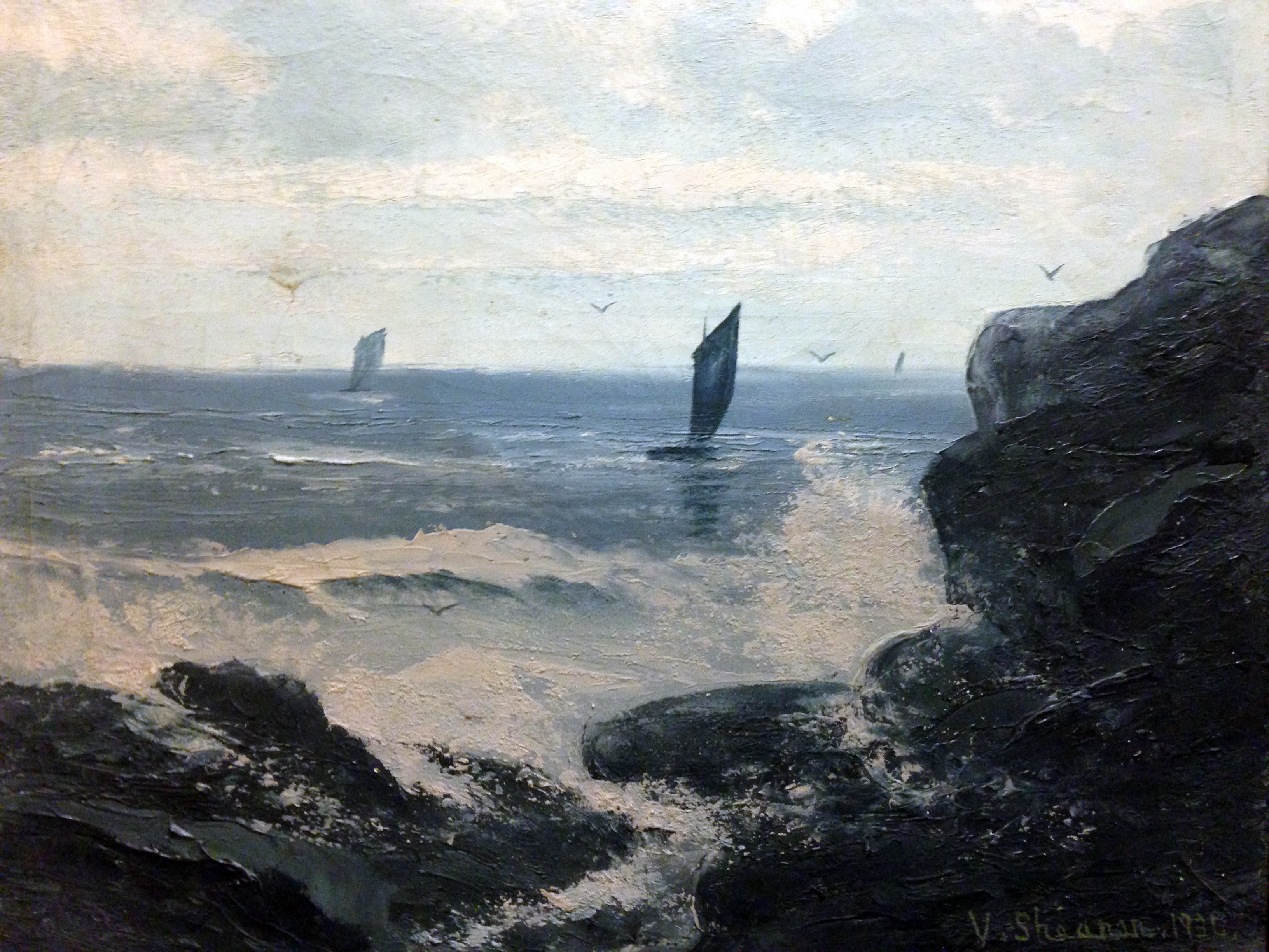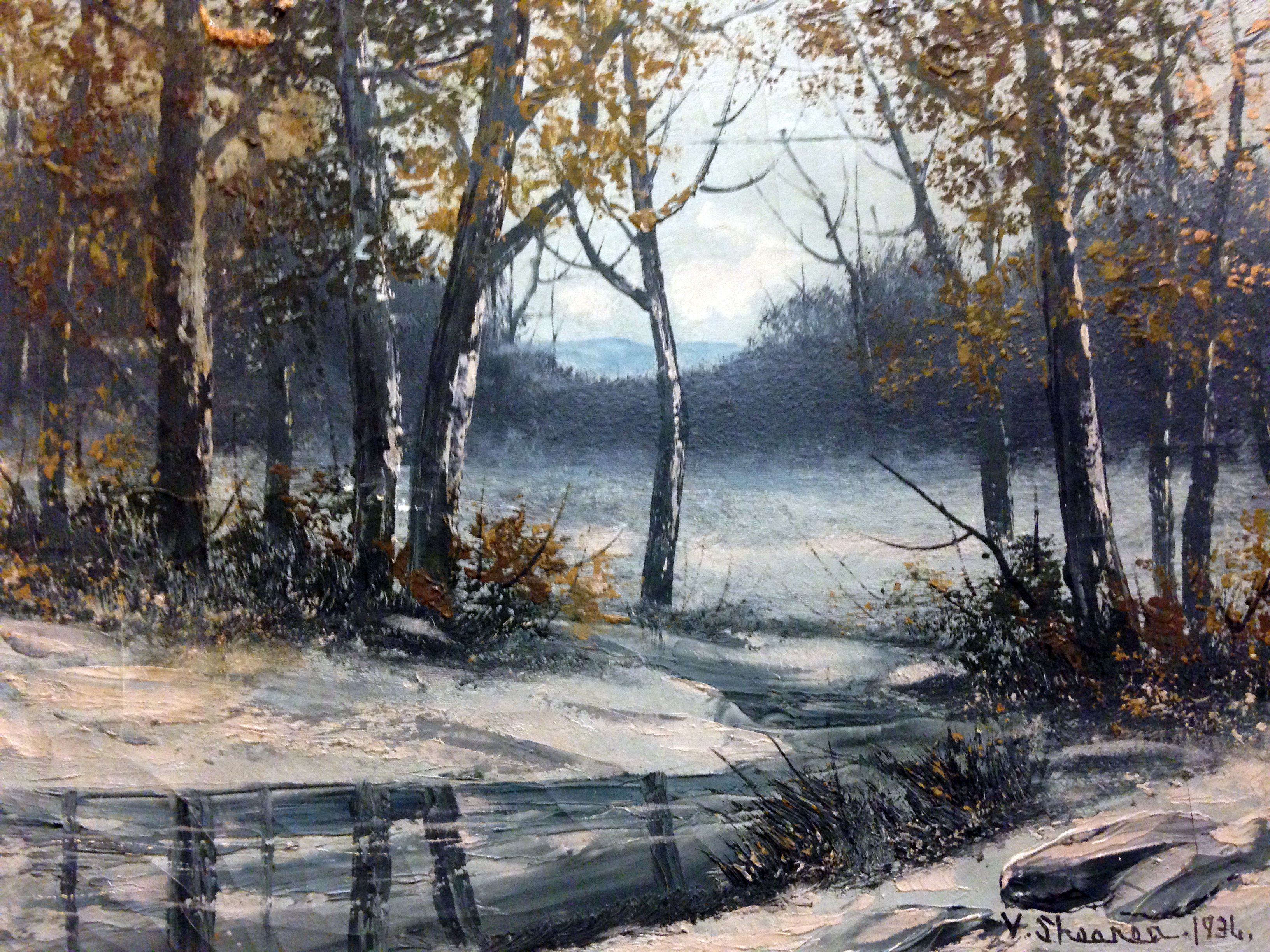 The artist was Victor Shearer, a landscape and seascape painter in traditional style who reportedly created many similar paintings “selling them for a few dollars apiece on the streets of Reading.”